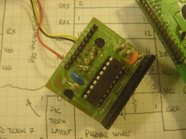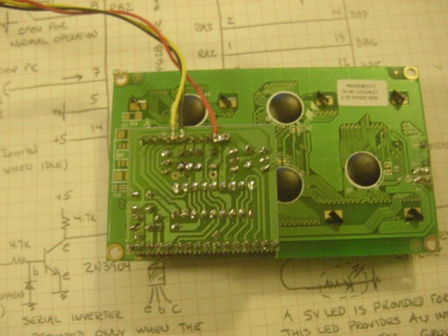 The daughter board is a small unit developed by Oatley Electronics in Australia as a part of their K221 kit which attaches to the back of the LCD using a 16-terminal female SIP connector. Unlike many designs, this permits the user to quickly swap out LCDs without desoldering.