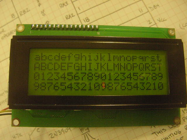 Again, note that the characters associated with the display of the "big number" characters are not compatible with the user defined characters one might use for plotting and thus, "big numbers" and graphics type applications using specially defined characters cannot coexist on the display.
