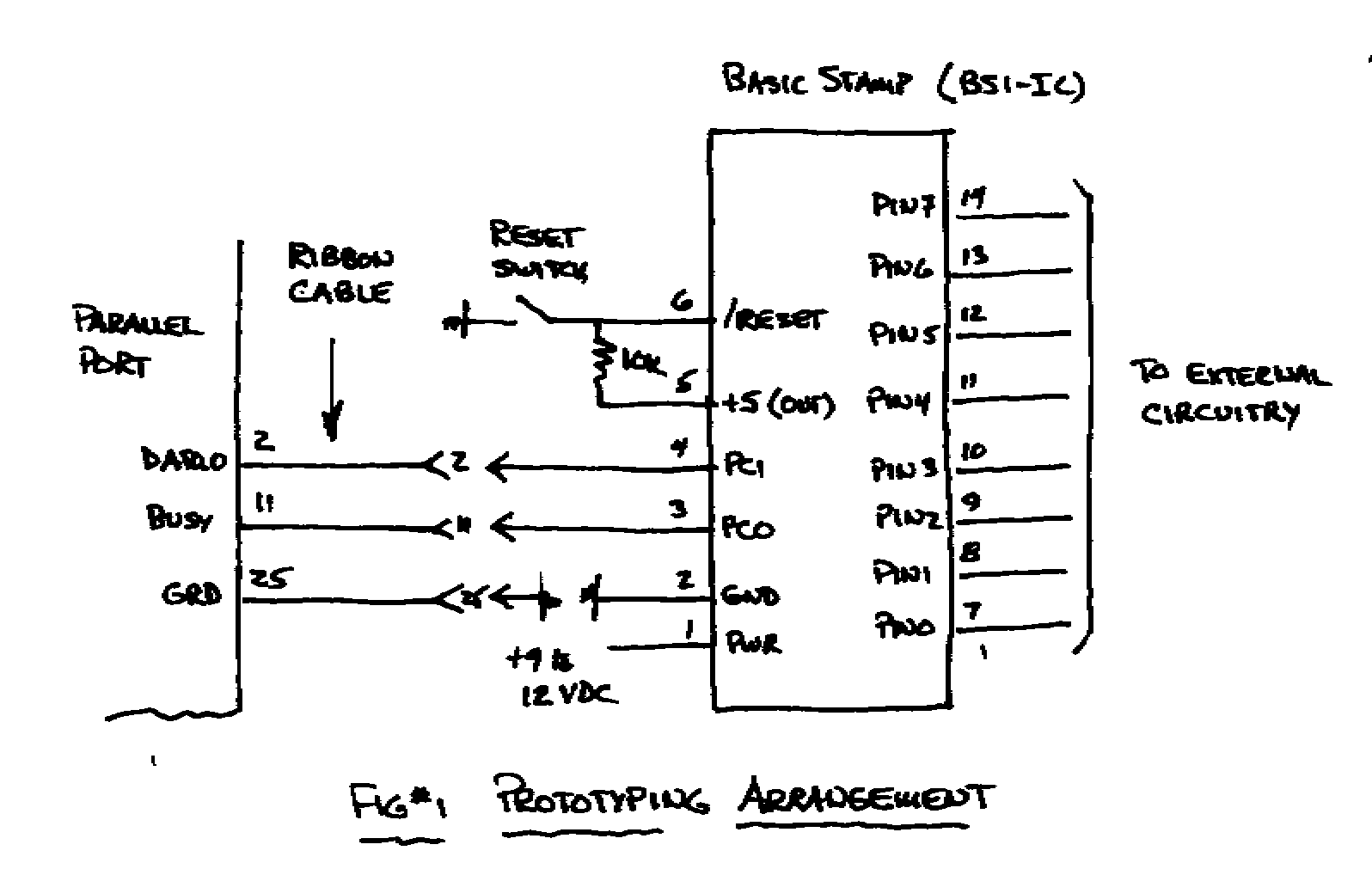 The programming package consists of a cable to interface the parallel port with the Stamp, a program disk and a 172 page manual. Sixty pages are devoted to a discussion of the PBASIC instructions and the balance is application notes. Let's take each of these and see how they may be obtained far more inexpensively.