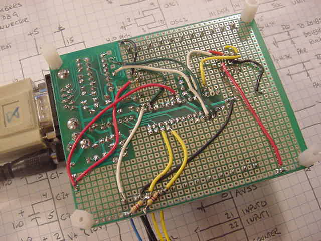 This is assembled using an . The unit includes a 9 VDC wall power unit, a 7805 voltage regulator, a nine conductor DB9 six foot serial cable, a programmed PIC16C773 and associated 4.0 MHz crystal, an MPX4115AS (stove pipe port), and an SHT-71 relative humidity sensor on an SOIC-DIP converter. All of this is wired.
