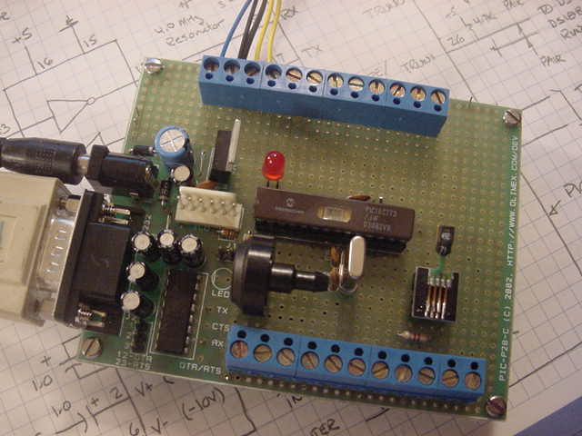 I have not wired the five A/D inputs, the counter, the two TTL outputs, the two TTL outputs nor the connection to the remote SHT RH sensor. Each of these involves running a 24 awg solid wire from a terminal on the PIC to a screw terminal.